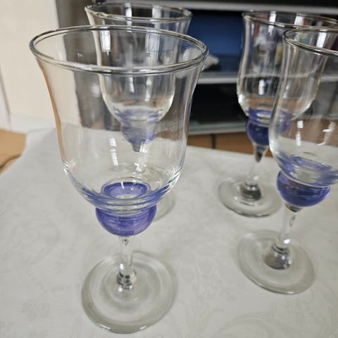 • 5 stk vann-/rødvinsglass (lilla stett)