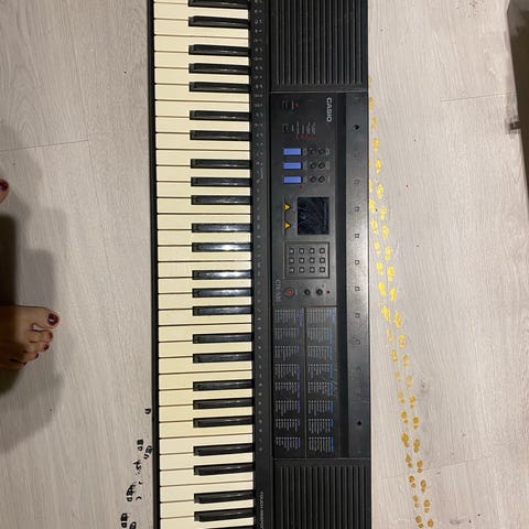 Gear4music MK-4000 elektronisk keyboard i svart utførelse. Modellen har fullstørrelse tangenter og et digitalt display som viser tempo og innstillinger. Keyboardet tilbyr 100 klangtyper (Timbre 100) og flere rytmer og akkompagnementer som kan velges via dedikerte knapper. Det har innebygde høyttalere, ulike kontrollknapper for tempo, lydvalg og funksjoner, samt flere jack-innganger/utganger på baksiden for tilkobling av for eksempel hodetelefoner, mikrofon eller ekstern forsterker. Egner seg til øving, musikkopplæring og generell hobbybruk.