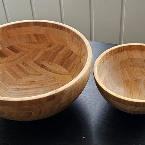 IKEA TINGFULLD bambus serveringssett med 3 porselensskåler. De to settene selges samlet. 100k for begge. Utmerket stand. Kun henting.