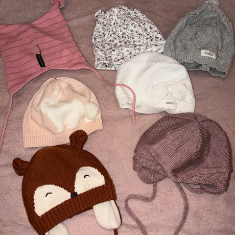 H&M lue for jente i størrelse 68. Luen er flerfarget og egner seg til hverdagsbruk for baby. Passer til barn rundt 2–6 måneder, avhengig av barnets hodeomkrets. Kan brukes både inne og ute etter behov, og er laget for å sitte godt rundt hodet og gi lett varme.