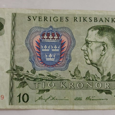 Pris er for alle 3 stk. Sveriges Riksbank 10 kroner seddel fra 1983 har pålydende verdi 10 svenske kroner.