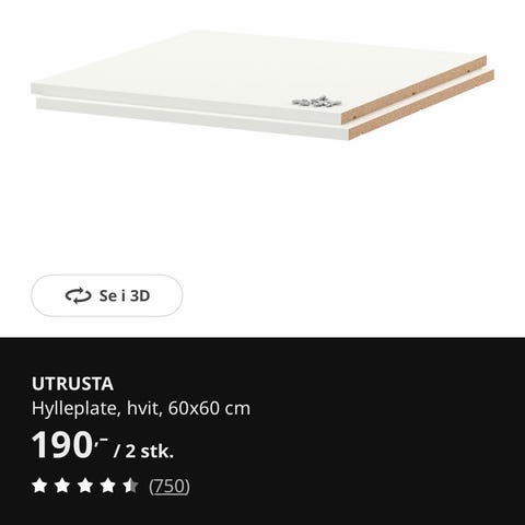 60x60cm Utrusta hylleplate til Metod kjøkken. Hadde en til overs, da vi nylig skiftet kjøkken.