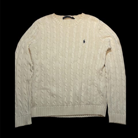 Selger denne veldig pent brukte Ralph lauren cable knitten for en billig penge den er i størrelse ekstra Large men passer også fint til Large send meg en melding om det er noe du lurer på🙌