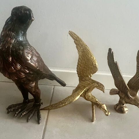 Messingfugler til veggpynt.