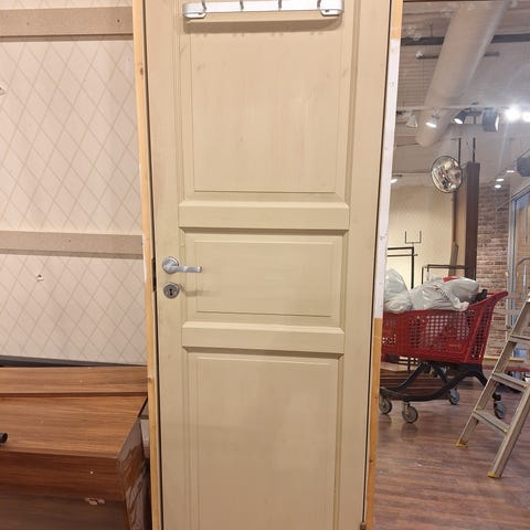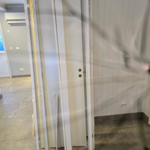 5 Hvit innerdør med karm. Døren har klassisk profilert design med flere speilfelt. Leveres med karm, og det er hull for dørhåndtak og låskasse. Egner seg som innvendig dør i bolig, for eksempel til soverom, bad eller oppholdsrom.