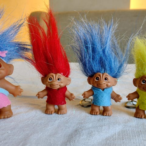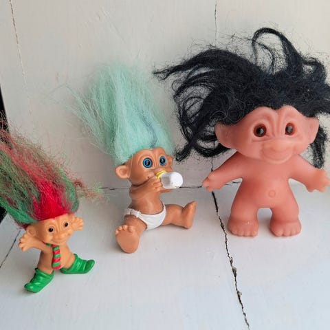 4 stk lykketroll fra 80-90 tallet i forskjellige str og farger selges samlet.