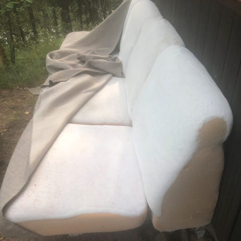 Puter satt opp på en vilkårlig krakk. Se neste bilde for illustrasjon på utemøbler.