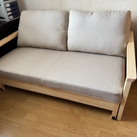 Selger to stykk sitteputer og ryggputer i serien Duvholmen. Trekk er av typen Froson. Begge fra IKEA.