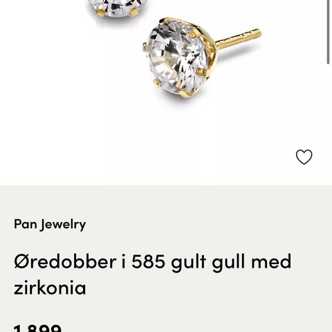 To par like Pan Jewelry øreringer med zirkonia selges billig. Et par i 925 sølv og et par i 925 forgylt sølv. Koster 599 kr pr stk i butikk, selger begge to for 600 kr.
