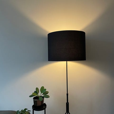 Pent brukt stålampe selges, ca 140 cm høy, lampeskjerm er ca 40 cm bred