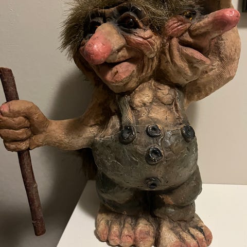 Troll veggdekor i tre med trollfigurer