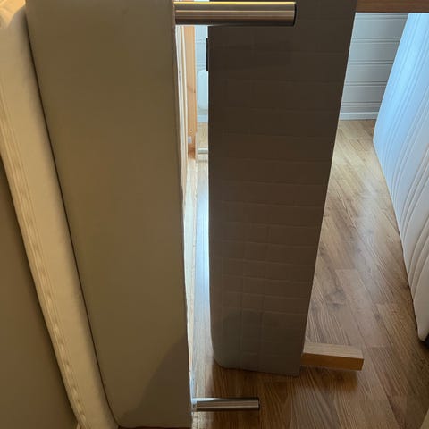 Godt brukt seng av type rammemadrasse, 90 cm bred, myk/mellomfast.
