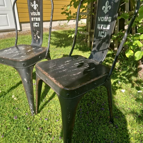 4 stk jernstoler i shabby chic stil, selges samlet. Kun seriøse henvendelser, ingen bud. Må hentes, selges pr stk, må hentes