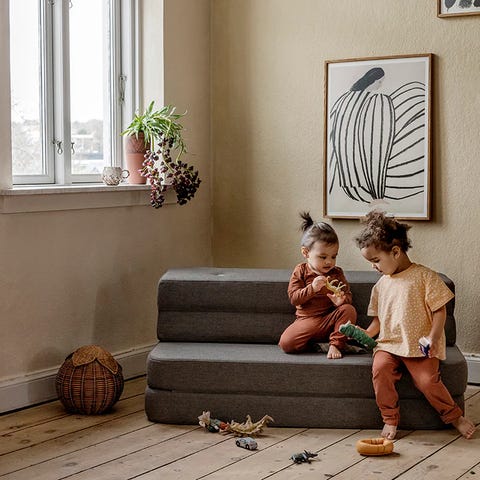 Fra nett: Med sine tre store sammenleggbare lag er 3 Fold XL fra Klip Klap den ultimate lekemadrassen for barn i alle aldre. En madrass, seng og sofa i ett. Bruk den som en loungesofa, til lesestunden, som en puff - eller bare som en lekemadrass. Når den er brettet ut er den 200 cm lang og kan brukes som gjesteseng når du har overnattingbesøk. Et møbel som du garantert får mye bruk for på barnerommet.