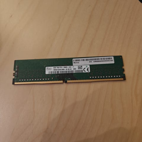 8GB RAM DDR4 modul for stasjonær PC. Standard DIMM-formfaktor. 2400MT/s. Passer som arbeidsminne i kompatible systemer som støtter DDR4 RAM.
