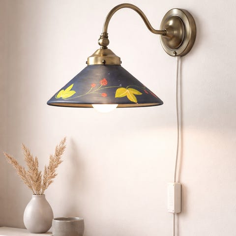 Vintage vegglampe i furu – med stoffskjerm