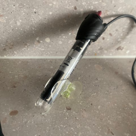 Akvarium varmeelement med sugekopper. To varmeelementer med strømledning og feste med sugekopper for montering på innsiden av akvariet. Passer til oppvarming og temperaturstabilisering av vann i akvarium. Egnet for bruk i innendørs akvarier der jevn temperatur er nødvendig for fisk og andre vannlevende dyr.