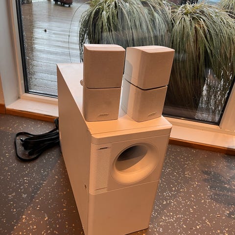 Egnet for bruk sammen med hjemmekinoreceiver i stue eller TV-rom der man ønsker et komplett 5.1 høyttaleroppsett i hvit farge.
