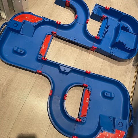 Aquaplaybane med diverse kjøretøy, broer etc. Trenger en vask men er i god stand.