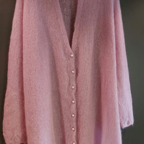Dame håndstrikket jakke i kid silk, størrelse L