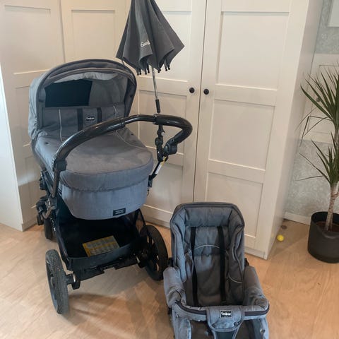 Velbrukt emmaljunga kombivogn selges. Den er absolutt godt brukt, men alt fungerer og den har både vært brukt lenge her hjemme før den til slutt var sovevogn i barnehagen den siste tiden vi brukte den. Ingen hull i stoff/trekk. Både sittedel og bassinett til baby følger. Den er ikke nyvasket for anledningen dessverre. Regntrekk som også er godt brukt kan følge med.