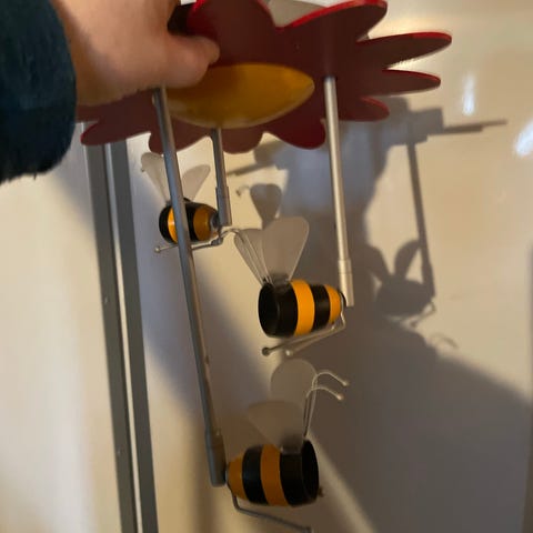 Praktisk og fin taklampe til barnerom. Blomst og bier fra Philips Massive. Spotter medfølger, disse virker og er dimbare. Biene kan vinkles til en viss grad og lampen gir godt lys.