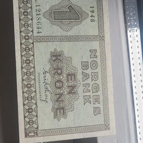 Norges Bank 1 krone seddel 1949 grønn