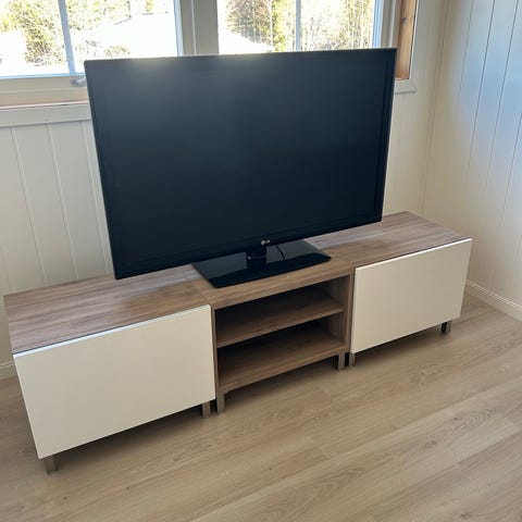 Oppbevaringshylle med skap i hvit utførelse. Hyllen har åpne hyller på den ene siden og et skap med dør på den andre siden, som gir både åpen og lukket oppbevaringsplass. Designet er rettlinjet og funksjonelt, egnet til bruk i stue, gang, soverom eller kontor for oppbevaring av bøker, dekor, tekstiler eller annet utstyr. Jeg har også til salgs et skap som passer fint til den hyllen m/skap som er avbildet som den kan stå på. Det er helt like dører og farge.