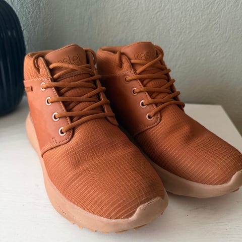 Kastel Maki Mid Leather sneakers i størrelse 40. Modellen er en mid-cut joggesko i fargen olivengrønn med hvit såle. Overdelen er i lær med tekstilpartier og snøring foran. Yttersålen har mønster for bedre grep. Passer som fritidssko til hverdagsbruk.