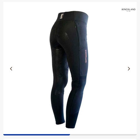 Flere ridebukser og én thermoridebukse for dame i størrelsene 36 og 38. Buksene har tettsittende passform med hel- eller kneskinn, og enkelte modeller har silikon-grep på setet og/eller innsiden av lårene for bedre feste i salen. Fargene varierer mellom mørke og mer fargesterke toner. Thermoridebuksen er laget i et tykkere materiale/foret innside egnet for kjøligere vær.