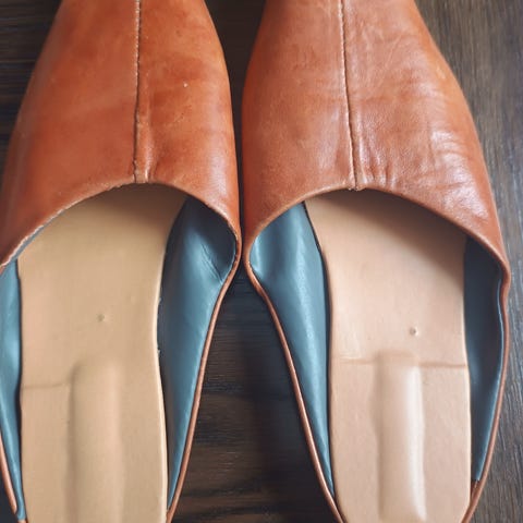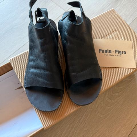 Sandaler i størrelse 38. Sandalene er laget i brunt skinn med synlige sømmer og har en flat, komfortabel såle. Passer til hverdagsbruk i varme perioder.