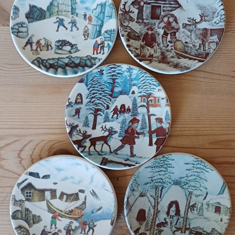 Norske keramikk veggplaketter (25x15 cm) – Same & Vikingskip – Retro 50/60-tall