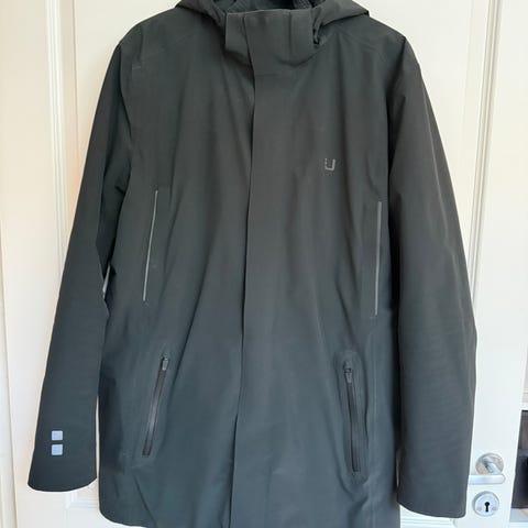 UBR jakke for herre i størrelse L. Jakken er blå. Den har hette, hel glidelås foran med beskyttende klaff og flere lommer både utvendig og innvendig. Passer som ytterjakke til hverdagsbruk og utendørsaktiviteter i kjøligere vær. Jakken er pent brukt i litt over 1 år. Har også hengt ubrukt i skapet i 1 år etter dette. Noe slitasje på jakkens innside i hals område. Ellers er den i god stand.