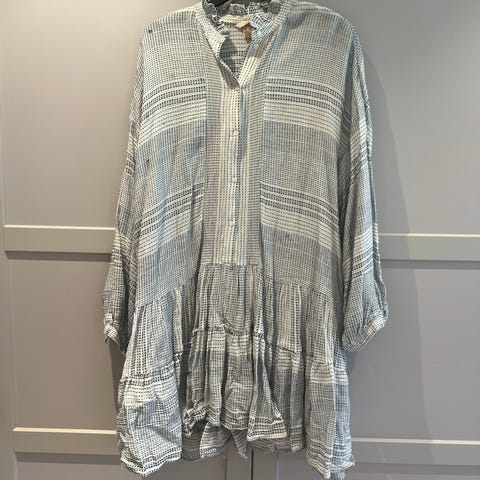 Even&Odd kjole i størrelse XS. Kjolen er hvit med prikkete mønster og laget i polyester. Den har lange ermer og flere volanger i skjørtet som gir et lagdelt uttrykk. Passer som hverdagskjole til ulike anledninger. Materialet er lett og faller mykt. Vask- og stellinstruksjoner følger av merkelappen på plagget.