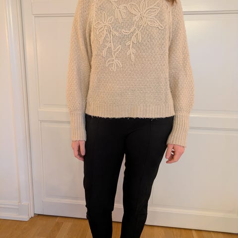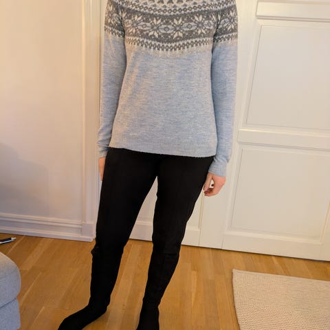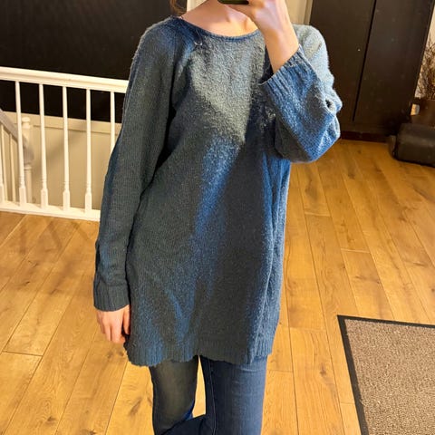 Myk genser av ukjent merke og størrelse, kjøpt på bruktbutikk. Vil si det er en M-L
