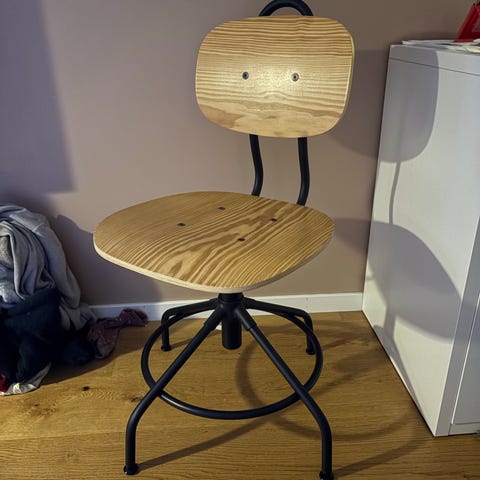 IKEA høy barnestol i tre. Stolen har sete og rygg i treverk og et stabilt understell med fire ben. Den er utstyrt med fottrinn i to høyder som gir støtte til barnets føtter. Egner seg som sitteplass ved spisebord eller kjøkkenbenk for barn som trenger en høyere stol. Designet gjør at stolen passer inn i de fleste kjøkken- og spisestueløsninger. Stolen har en naturlig trefarge og inkluderer en justerbar roterbar funksjon. Mål: 55 cm bredde, 55 cm dybde, 84 cm høyde. Passer for barn og gir støtte og komfort ved spisebord eller arbeidsområder. Sete er justerbar i høyden