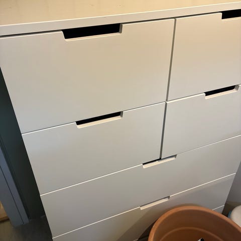 Selger en hvit IKEA MALM kommode med 4 romslige og fullt funksjonelle skuffer. Kommoden er stabil, pent brukt og i veldig god stand.