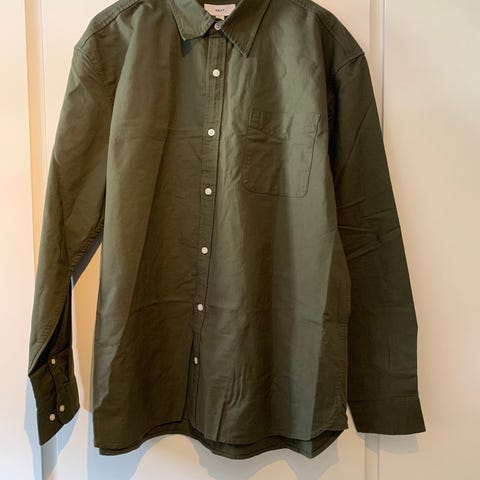 Vailent skjorte for herre i størrelse XL. Skjorten er grønn og laget av bomull. Den har klassisk krage, lange ermer og knappelukking foran. En brystlomme på venstre side. Passer til hverdagsbruk eller mer formelle anledninger avhengig av styling.