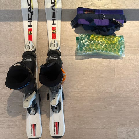 Head alpinski sett med støvler og staver for junior. Settet består av et par alpinski fra Head med integrerte bindinger, et par alpinstøvler i størrelse 230–235 mm sålelengde, samt et par skistaver. I tillegg følger det med en hjelm og en oppbevaringspose. Passer til alpint bruk i bakke for barn/junior. Farger hovedsakelig hvit og lilla/rosa på ski, støvler og hjelm.