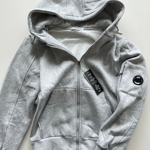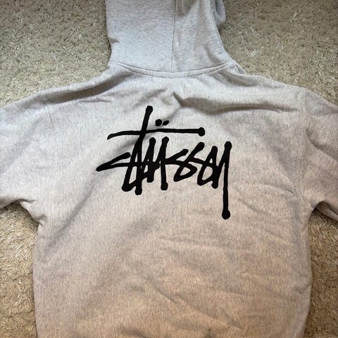Supreme hettegenser for herre i størrelse L. Genseren er grå og laget av bomull. Modellen har glidelås i front, hette med snøring og ribbekanter ved ermer og midje. Stor Supreme-logo er plassert på brystet. Passer som hverdagsplagg eller til fritidsbruk.