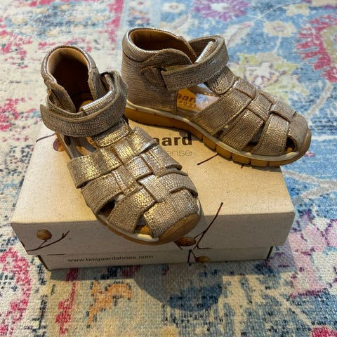 Bisgaard skinnsandaler for barn i størrelse 26, mørkeblå. Pent brukt av et barn som innesko hjemme, men kan også brukes som utesko vår/sommer/høst.