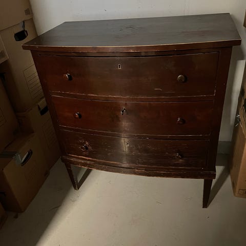 Svart dobbel kommode gis bort grunnet overgang til nytt skap. Er helt og fin i skuffene, men slitt på lista øverst foran.