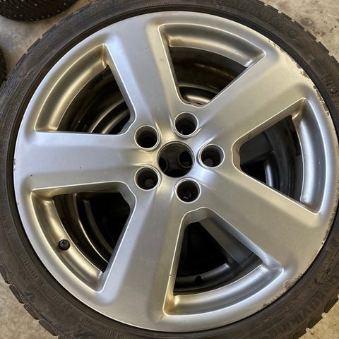 1 sett / 3 stk Audi-felger + dekk(pigg) selges. 750kr.