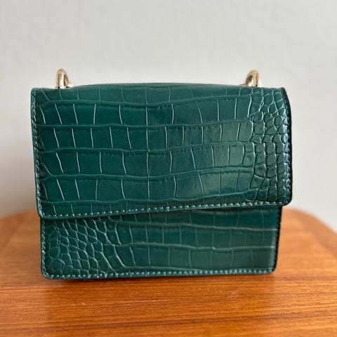 Pen mørkeblå veske i «skin» stoff. Pent brukt!