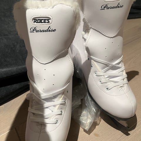 Skøytene er lite brukt og i veldig god stand. Bladene er fine og jevne, og skoene har minimalt med slitasje (se bilder).