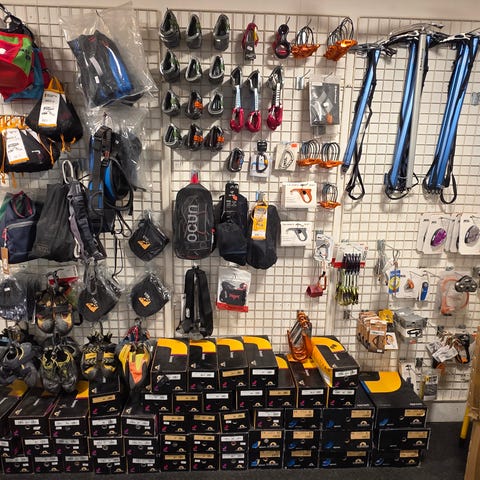Petzl fallsikringsutstyr med tau og tilhørende utstyrssekker. En komplett pakke av alt du trenger.