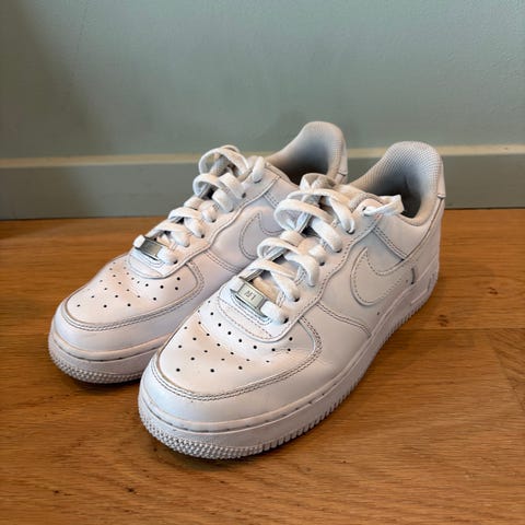Nike joggesko for barn, gutt, i størrelse 33. Skoene er hvite med snøring og perforert overdel for ventilasjon. Modellen har lav ankelhøyde og gummisåle som gir godt grep. Egnet som hverdagssko og fritidssko for gutter i aktuell skostørrelse.
