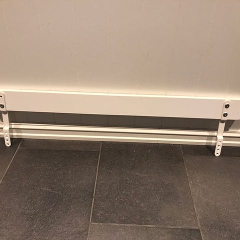 Denne er høy og passer perfekt til en høy madrass for eks. Den ene delen legges under madrassen.