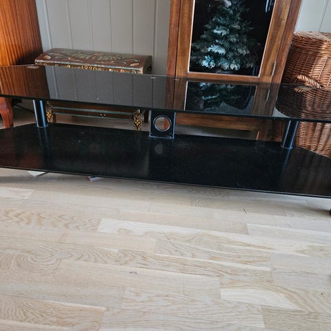 Stilren TV-benk i glass og svart utførelse (146x40 cm)