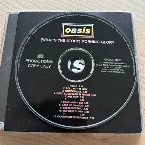 Oasis (What’s The Story) Morning Glory? LP vinylplate. Studioalbum utgitt på 12" vinyl. Standard svart vinyl med albumcover som vist på bildene. Passer til avspilling på platespiller som støtter 33 1/3 rpm LP-plater.